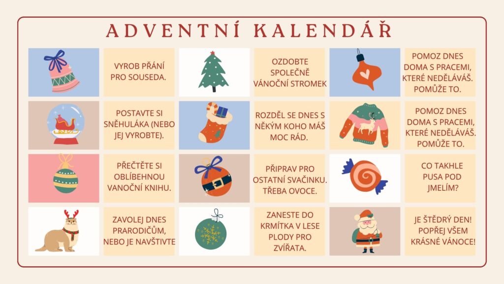 - 24 jednoduchých, milých a smysluplných úkolů pro děti do adventního kalendáře — ideální pro každý den až do Vánoc.